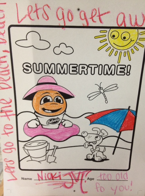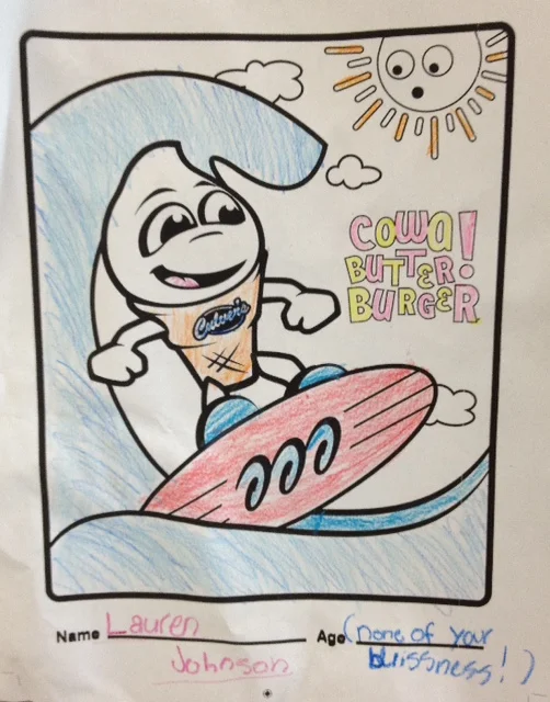 Last night I went to Culver's to get dessert with a friend. While waiting in line for my frozen custard, I happened to look over at some coloring contest entries hanging on the wall. It struck me that there was a considerable amount of attitude on display in addition to mad Crayola skills. Check out how the "Age" blank was filled in on three of them: